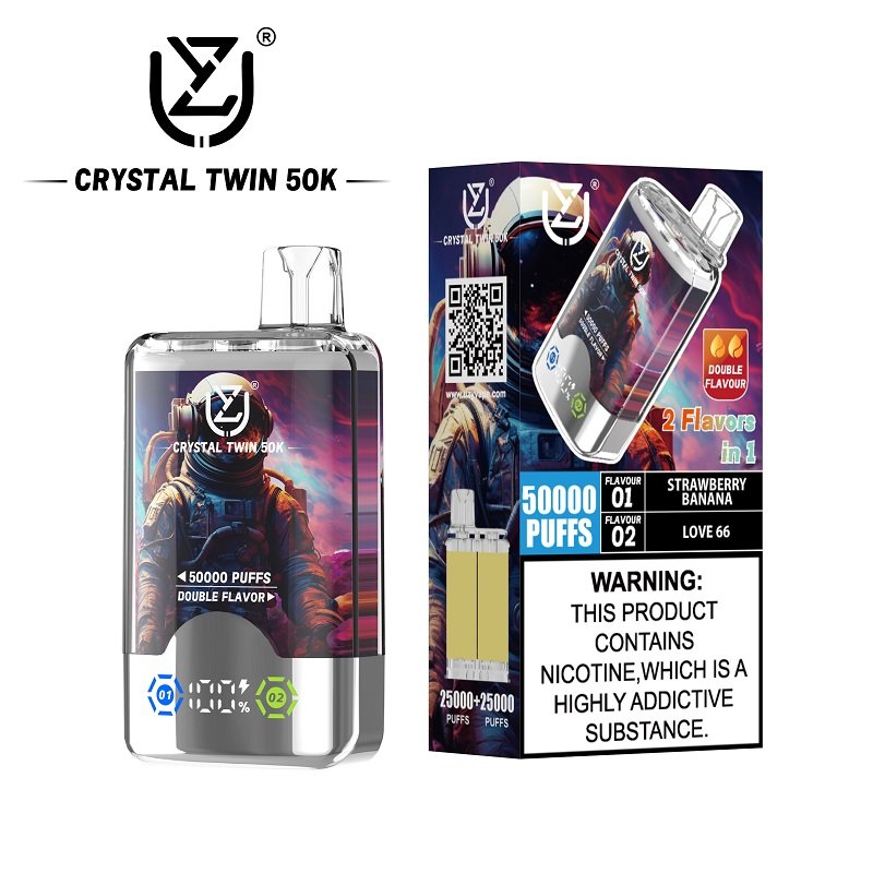 The UZY Crystal Twin 50000 is not just a disposable vape; it’s a high-capacity powerhouse designed for enthusiasts who demand variety and longevity. Featuring a revolutionary rotating flavor switcher, this device allows you to toggle between two distinct premium flavors instantly.